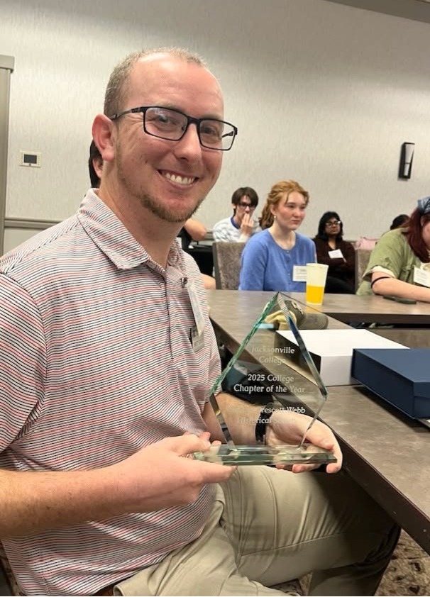 The first stop for the group was the Sixth Floor Museum, where students learned about John Kennedy’s assasination. Later that evening, the students enjoyed eating at the nostalgic Magic Time Machine restaurant in Dallas.The second day, students attended the Webb Society Session and presented the report from Jacksonville College. Kim Pena, Director of Educational Services, presented Jacksonville College as the College Chapter of the Year. This award honors the most outstanding chapter from a junior or community college. The Jacksonville College chapter has received this distinction multiple times, underscoring its consistent excellence and the strength of its program and student involvement.